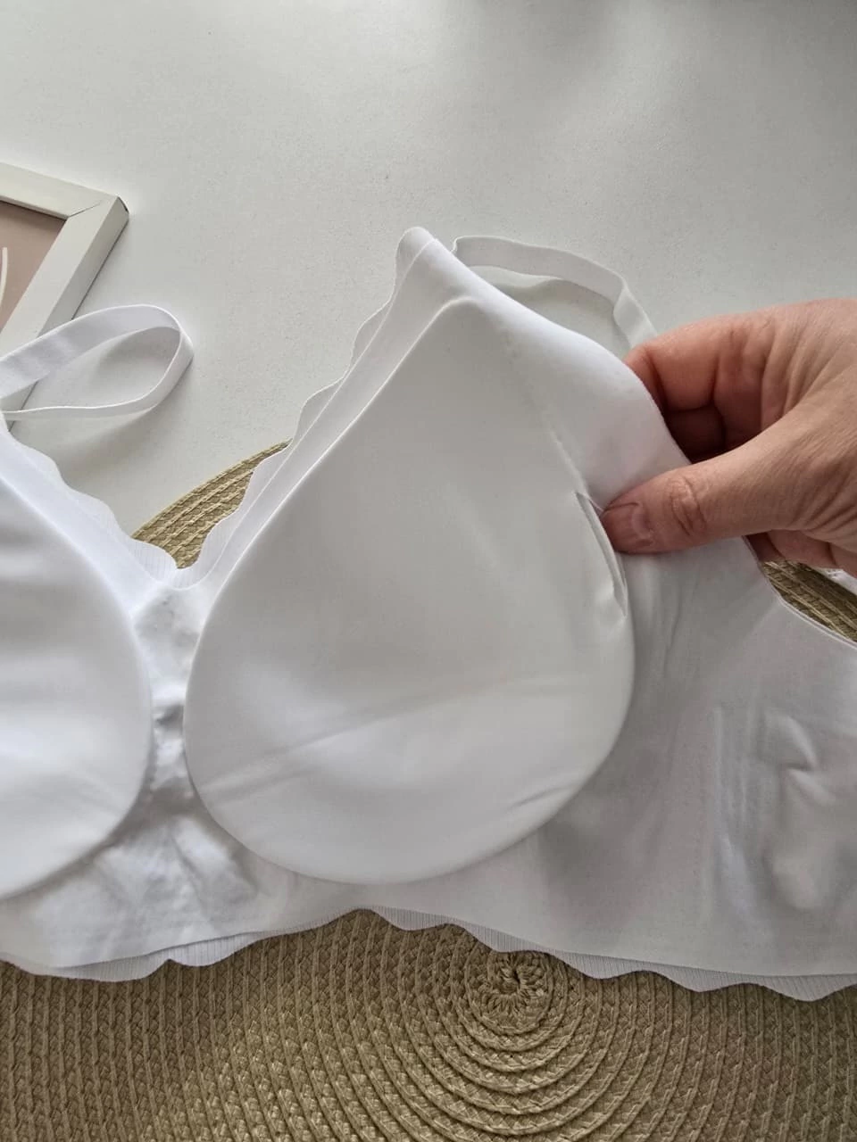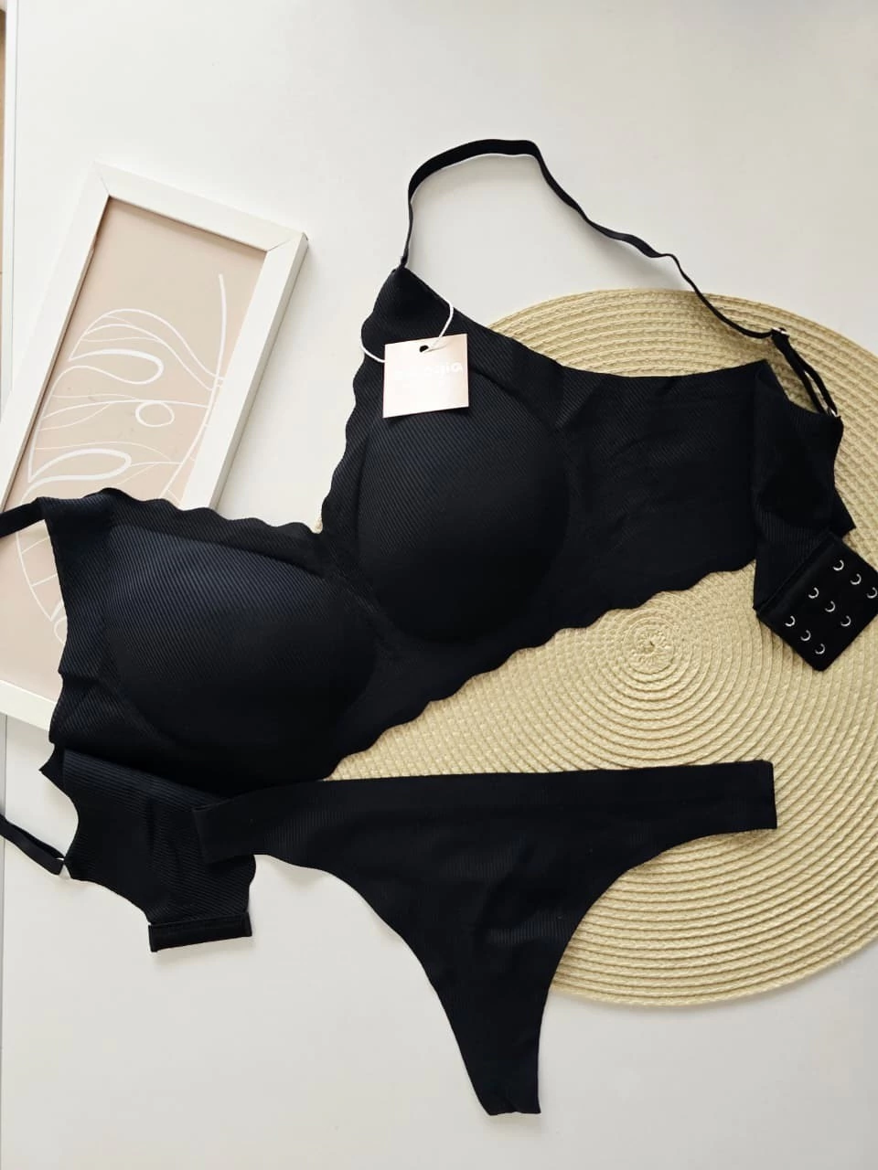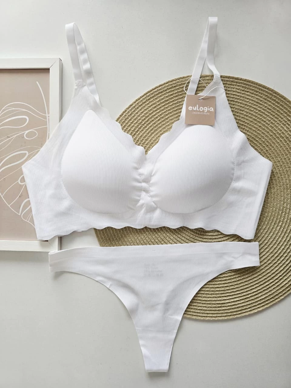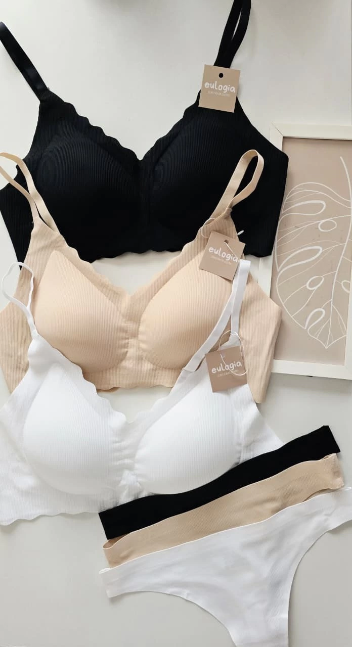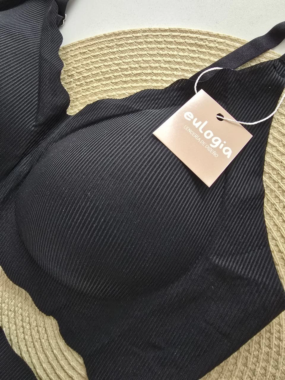 - Conjunto invisible de corpiño con tazas soft separadas y colaless. Los avíos son de metal y los breteles son regulables. Posee tazas desmontables con pequeño push up, tiene 4 posiciones para regular la espalda.