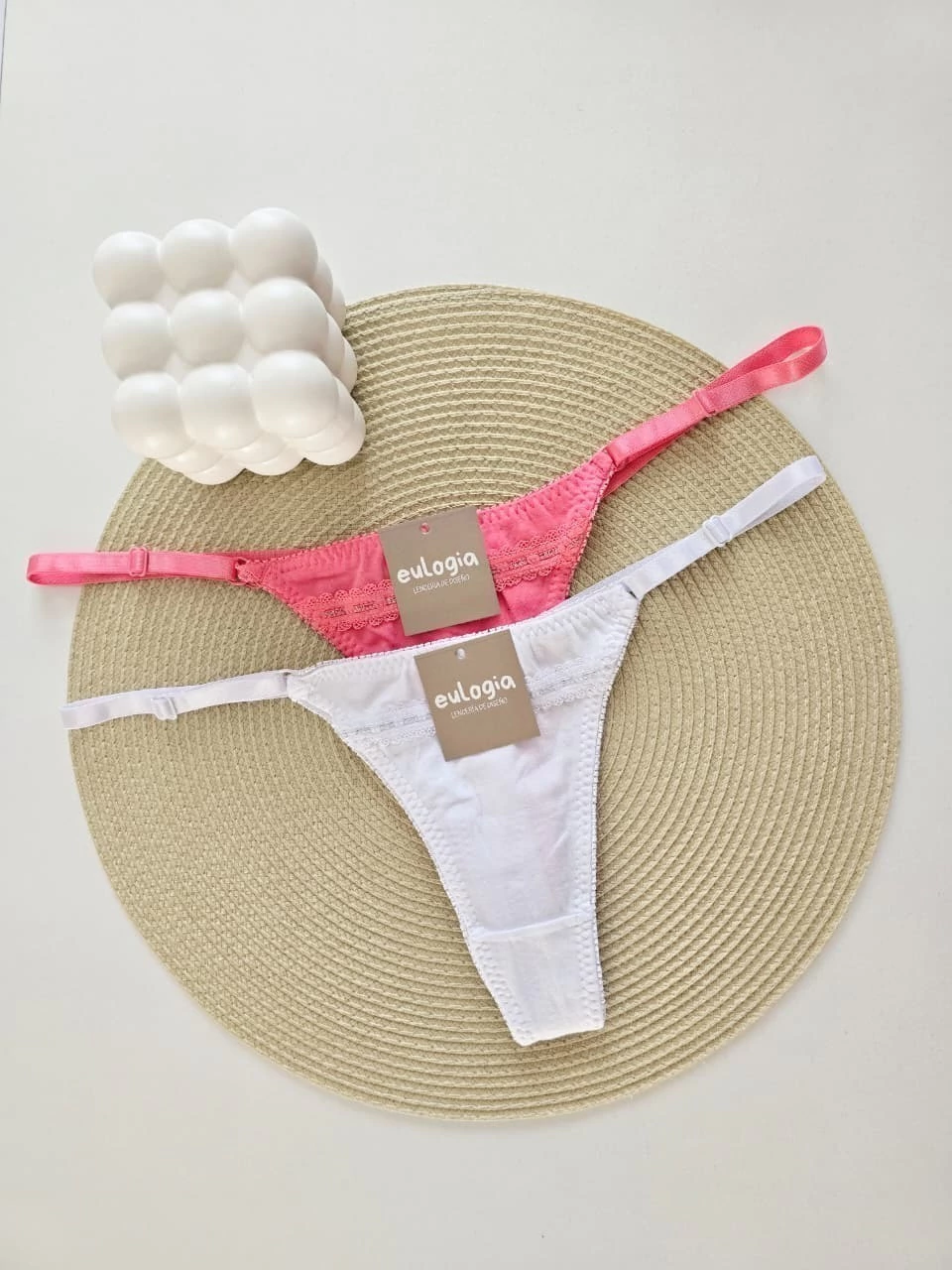- Pack de 2 less regulables de algodón con detalle de puntilla.