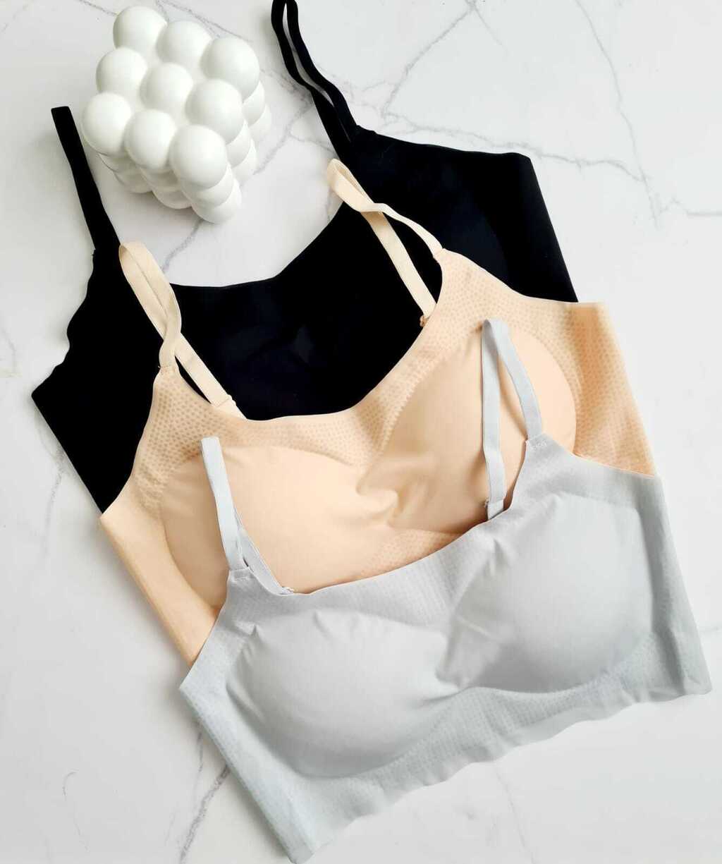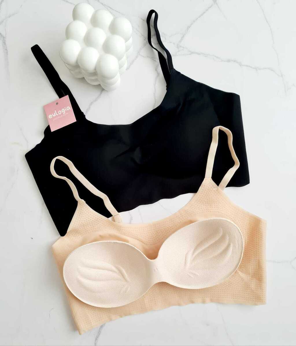 - Top invisible de latex con taza desmontable. Sin ganchos en la espalda. Costuras selladas.