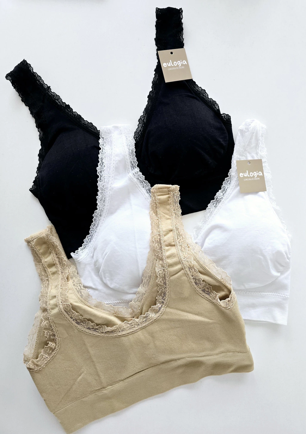 - Top de microfibra con tazas desmontables. Tiende detalles de puntilla en el escote.