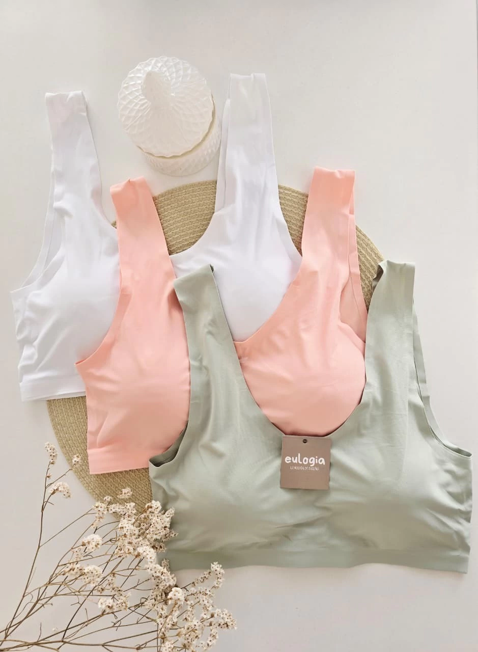 - Top de bretel ancho invisible con tazas desmontable separadas.Con ganchos en la espalda. Sin costuras.